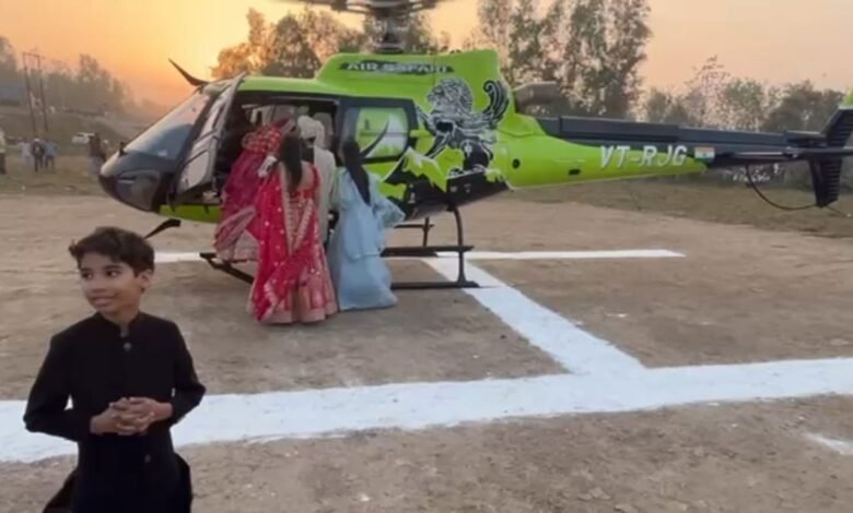 हेलीकॉप्टर से ले गया दुल्हनिया, देखने वालों का लगा तांता