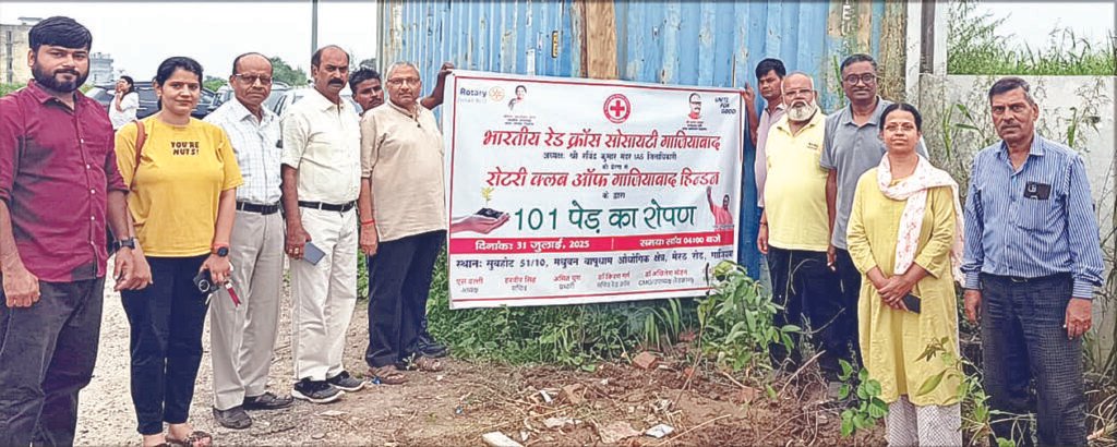 गाजियाबाद। भारतीय रेड क्रॉस सोसायटी गाजियाबाद इकाई के नवागत अध्यक्ष रविंद्र कुमार मंदर आईएएस जिलाधिकारी की प्रेरणा से प्रधानमंत्री नरेंद्र मोदी के आह्वान पर एक पेड़ मां के नाम को सार्थक करते हुए सभापति सुभाष गुप्ता के नेतृत्व में 101 फलदार व जड़ी बूटियां के वृक्षों का वृक्षारोपण किया।