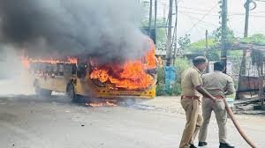 मेरठ में स्कूल की बस में लगी आग, परतापुर थाने के सामने हुआ हादसा, 18 बच्चे थे सवार